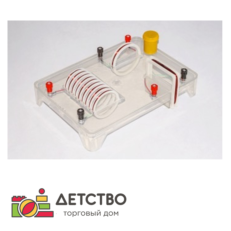 Комплект предназначен для наблюдения силовых линий магнитного поля вокруг проводников с током. Набор состоит из прозрачного планшета, на котором смонтированы модели прямого, кольцеобразного проводников и катушка. В комплект также входит магнитный порошок 10 г.Под действием магнитного поля электрического тока порошок располагается вдоль линий магнитной индукции и образует наглядную картину спектра. Подключите к клеммам планшета источник постоянного тока типа В-24. Внимание! Сила тока в моделях не должна превышать 1А во избежание нагрева пластмассовых деталей.